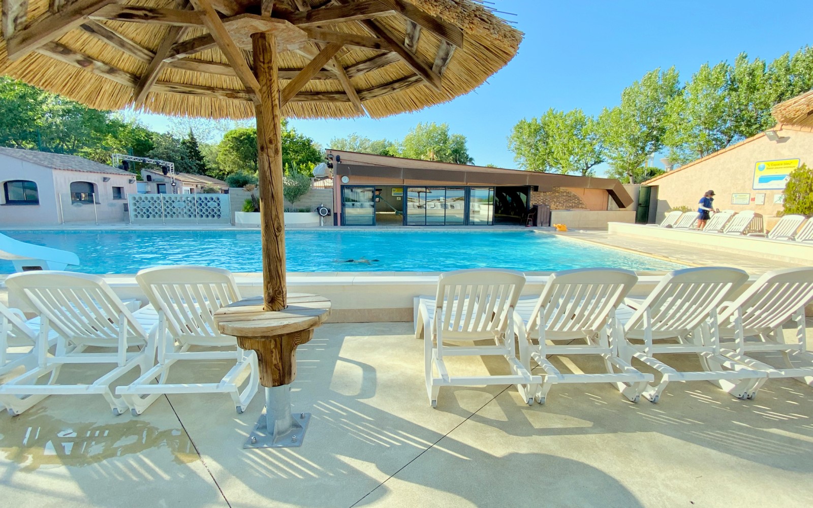 Nos infrastructures se veulent conviviales, accessibles à tous, gratuites et utiles pour toute la saison d’avril à septembre avec son aire de barbecue collective, ses piscines dont une est couverte et chauffée, son aire de jeux pour enfants, ses animations pour tout âge, sa salle de cinéma avec des projections tous les jours…